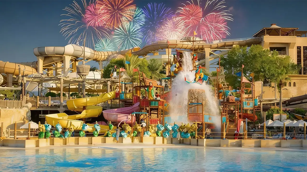 يمكنك تجربة الألعاب المائية برفقة العائلة، مع الاستمتاع بأجواء الوجهة الترفيهية والحيوية عبر نافورات المياه وحمامات السباحة الواسعة.